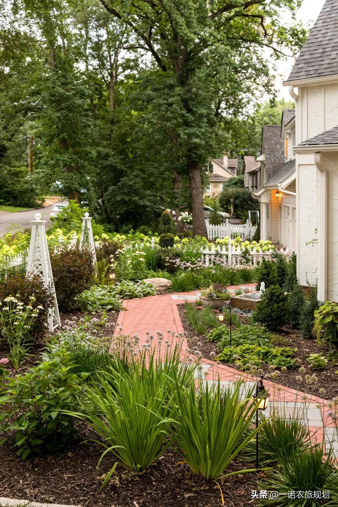 对于植物来说,选择本土植物,适应当地气候环境,可有效的节省水资源。灌木、地被植物和多年生植物组成的花园,比一二年生植物和造型植物更易于打理和养护。草坪需要充足的水、适当的施肥和修剪,所以低维护花园不建议种植草坪。