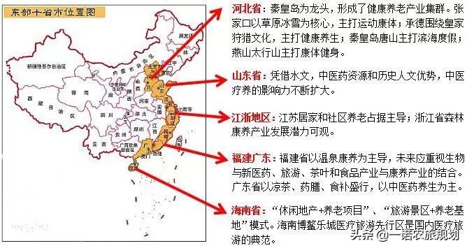 包括华北的京津冀三省、华东的鲁苏浙沪闽、华南的粤琼,还涵盖港澳台,“北上广深”等一线城市均位于此,中国经济最发达的区域,康养产业基础较好。以下为东部各省康养产业状况: