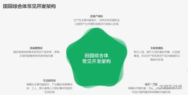 田园综合体开发不是农业旅游空间规划,而是生产生活娱乐“人本“空间构建;田园综合体建设不是普通“农+游”业态打造,而是一二三产产业链创新整合;田园综合体利益不是资方一家独大,而是“民、政、企”多方利益分摊。产业经济结构多元化,由单一产业向一二三产业联动发展,从单一产品到综合休闲度假产品开发升级,从传统住宅到田园体验度假、养老养生等为一体的休闲综合地产的土地开发模式升级。在一定的地域空间内,将现代农业生产空间、居民生活空间、游客游憩空间、生态涵养发展空间等功能版块进行组合,并在各部分间建立一种相互依存、相互裨益的能动关系,从而形成一个多功能、高效率、复杂而统一的田园综合体。